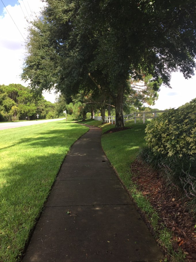 We had our routine path, around the corner, past the pond, down to the left where old oak trees shaded us from the sweltering Florida sun, around the corner again along the sidewalk where bunnies scampered and butterflies flittered into the bramble when we passed.